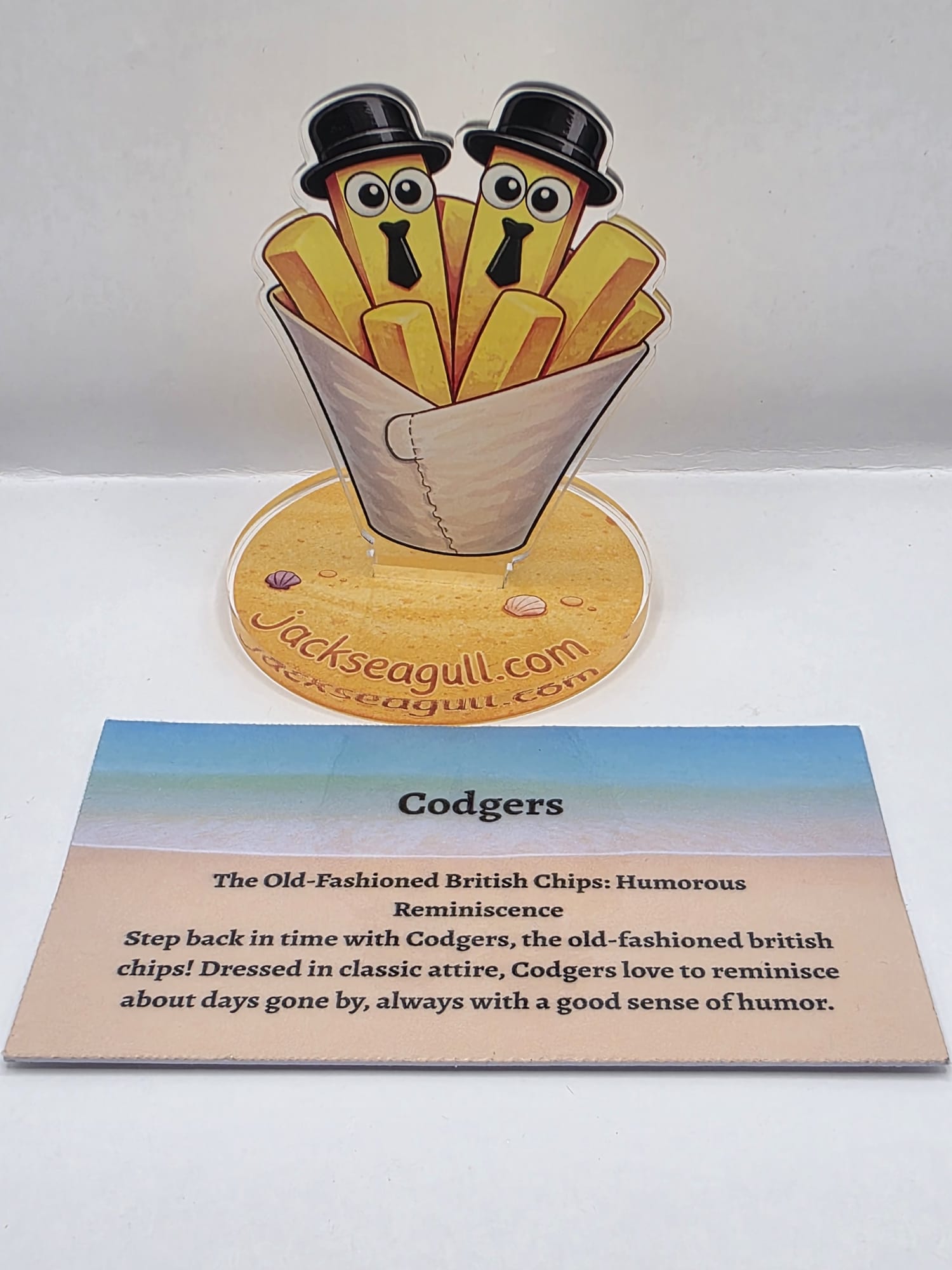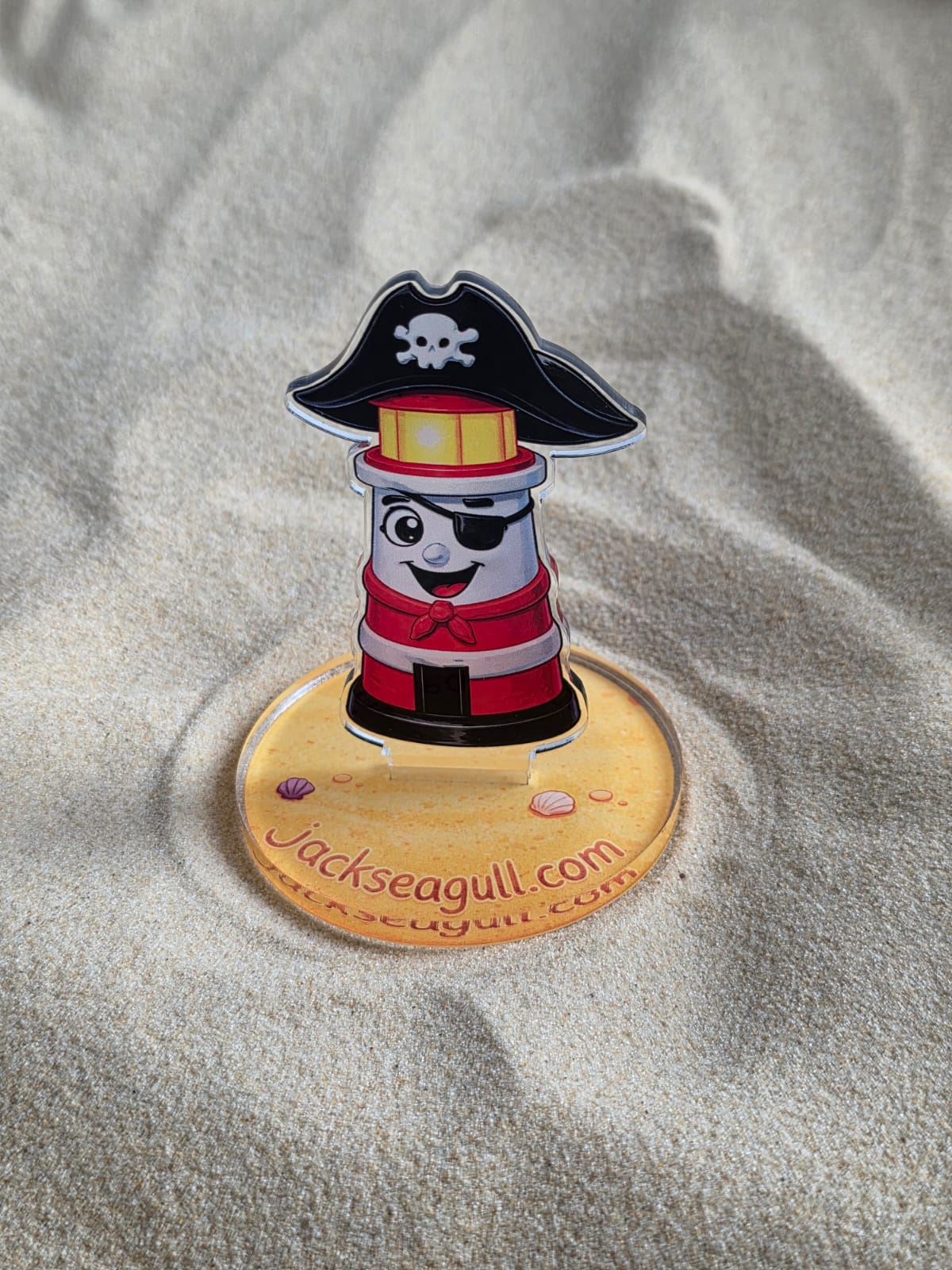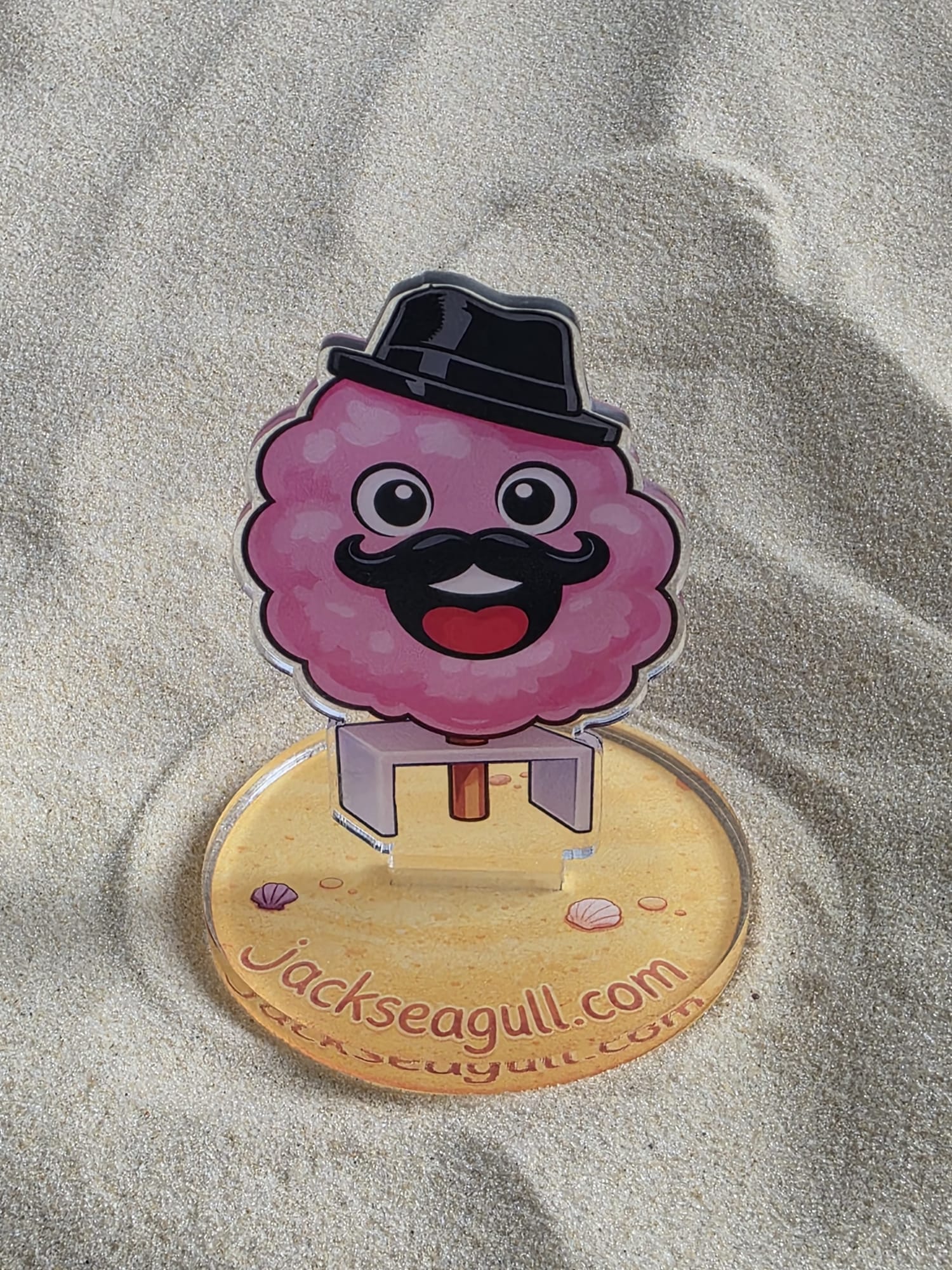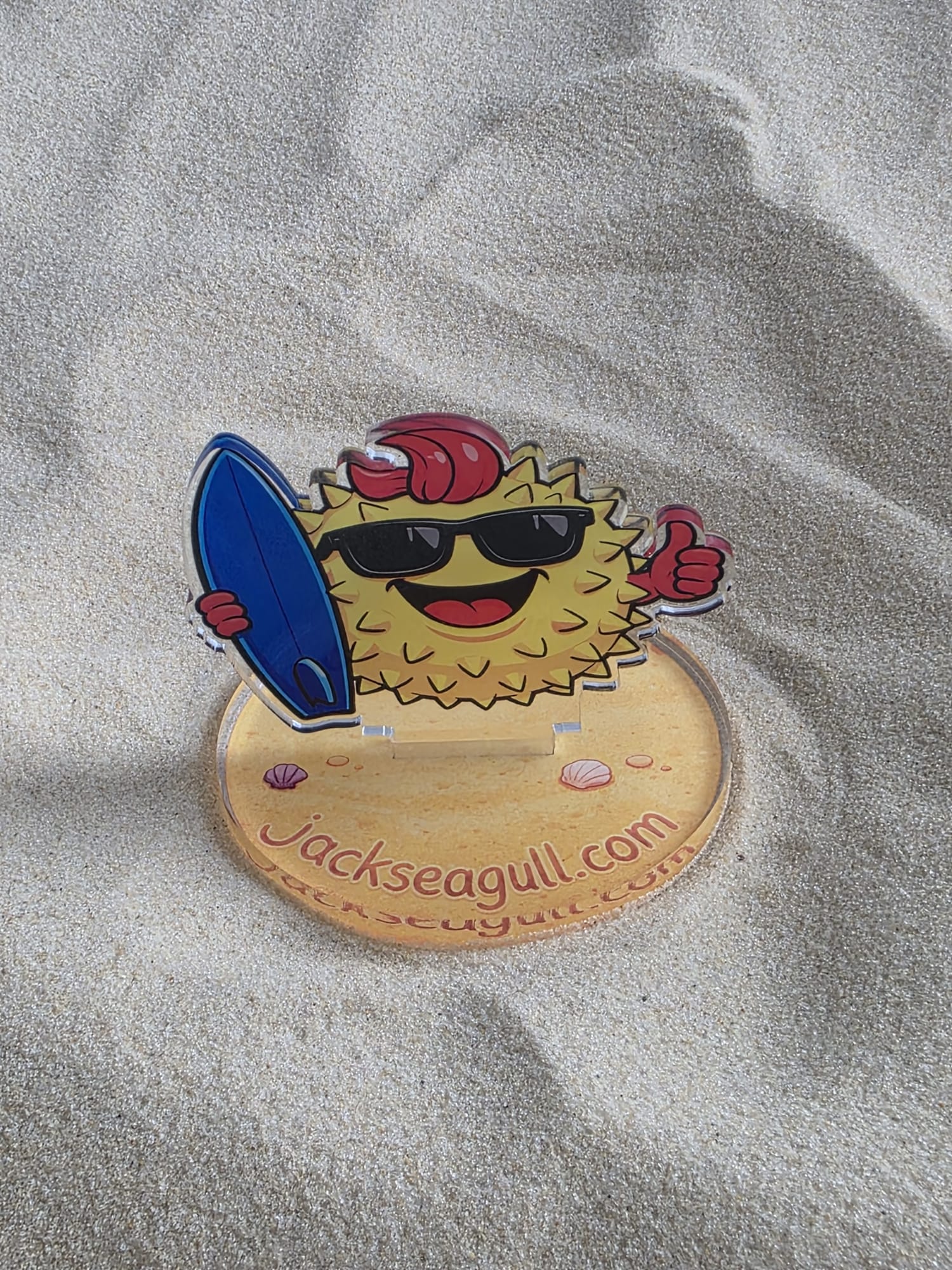 This acrylic standee slots easily into its base to create a colourful seaside character perfect for desks, shelves, or small displays.