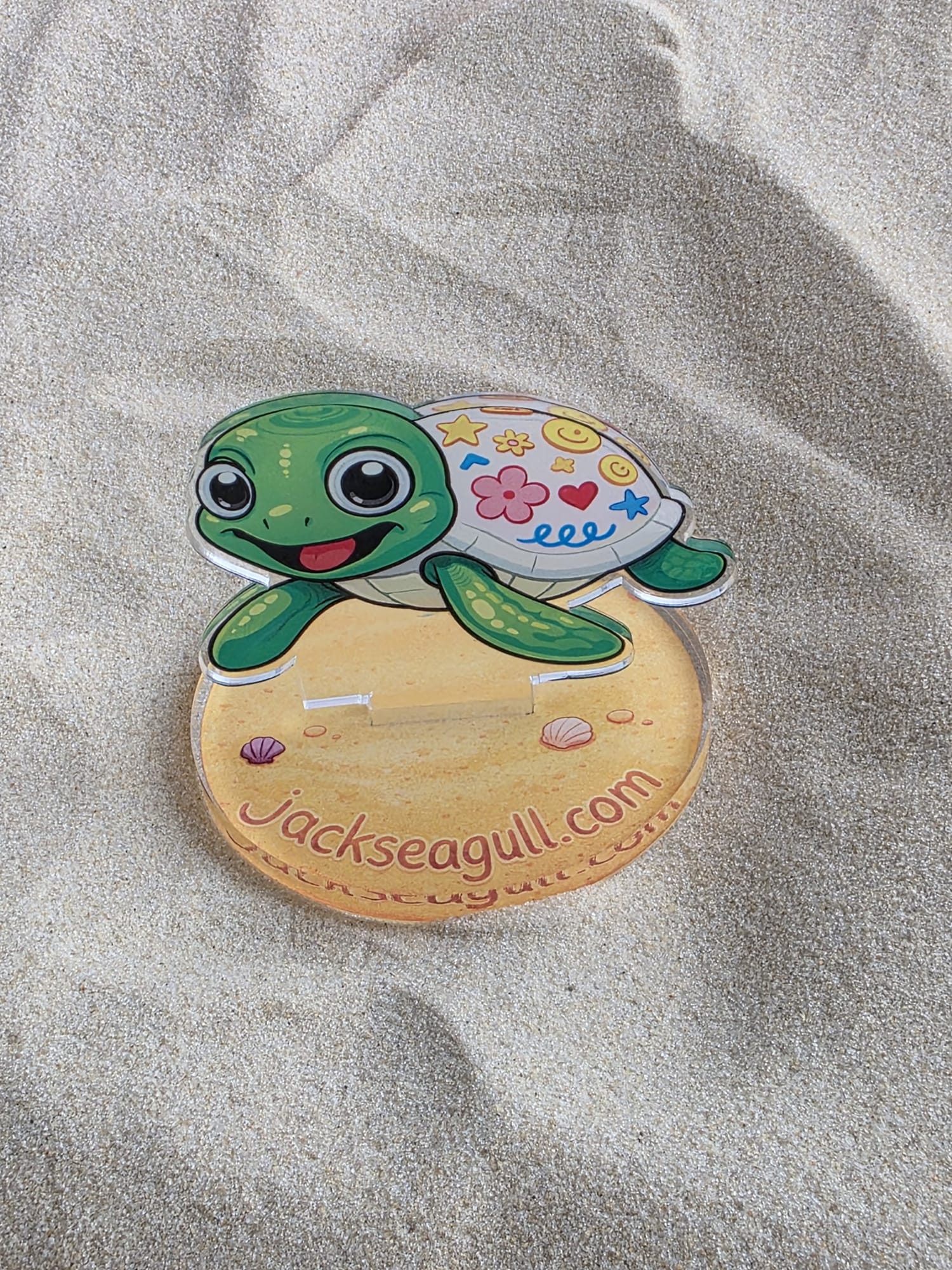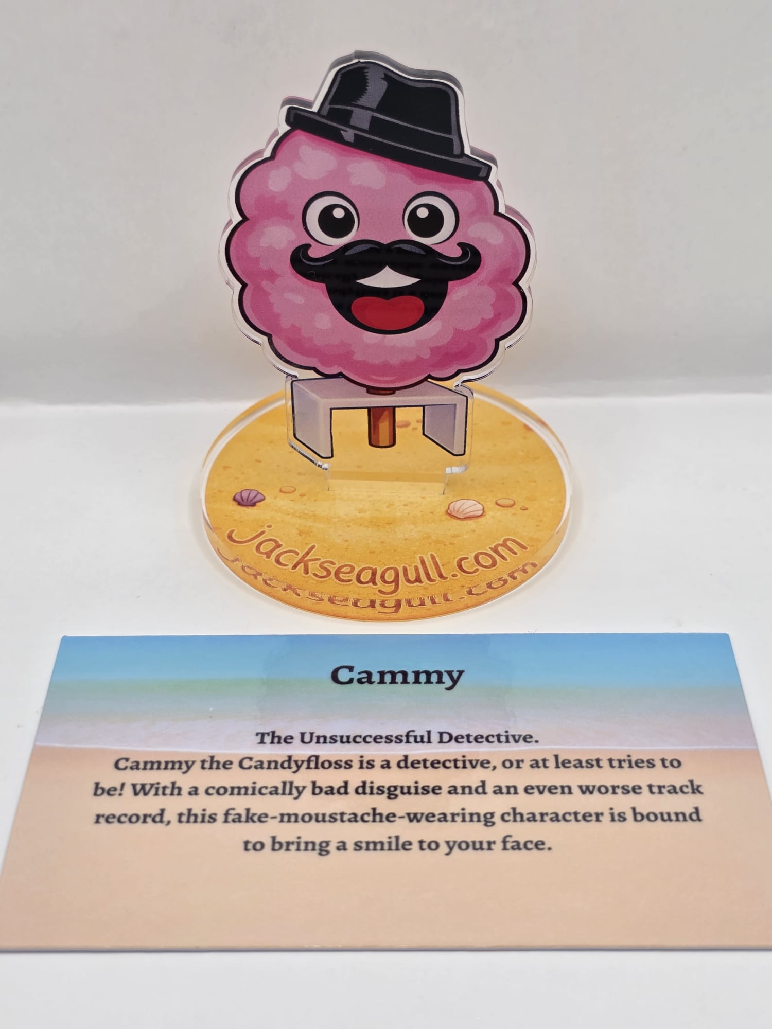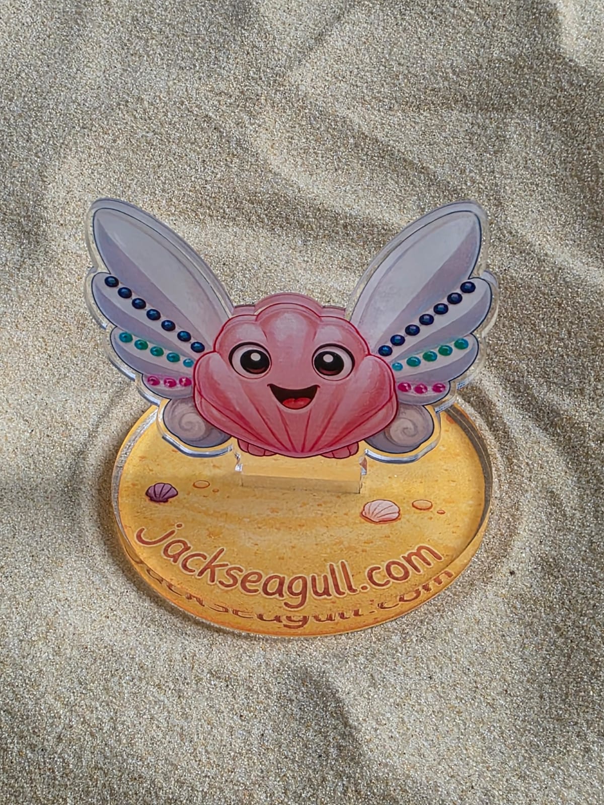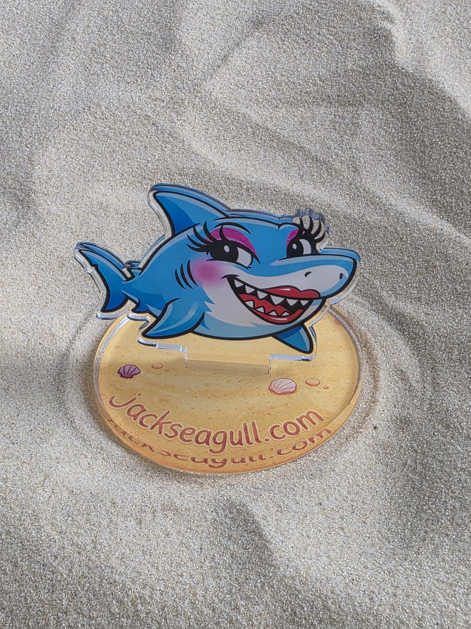 This acrylic standee slots easily into its base to create a colourful seaside character perfect for desks, shelves, or small displays.